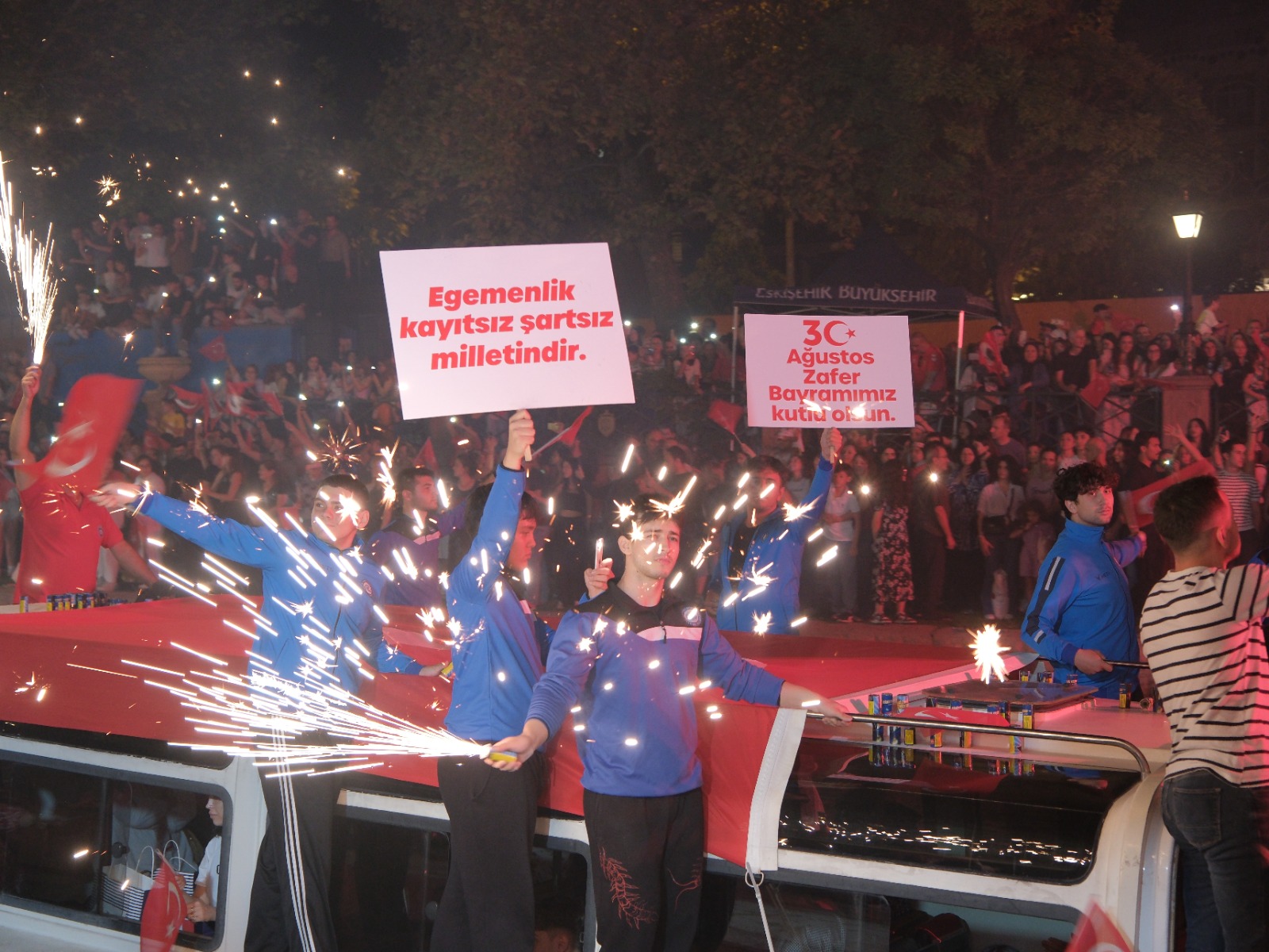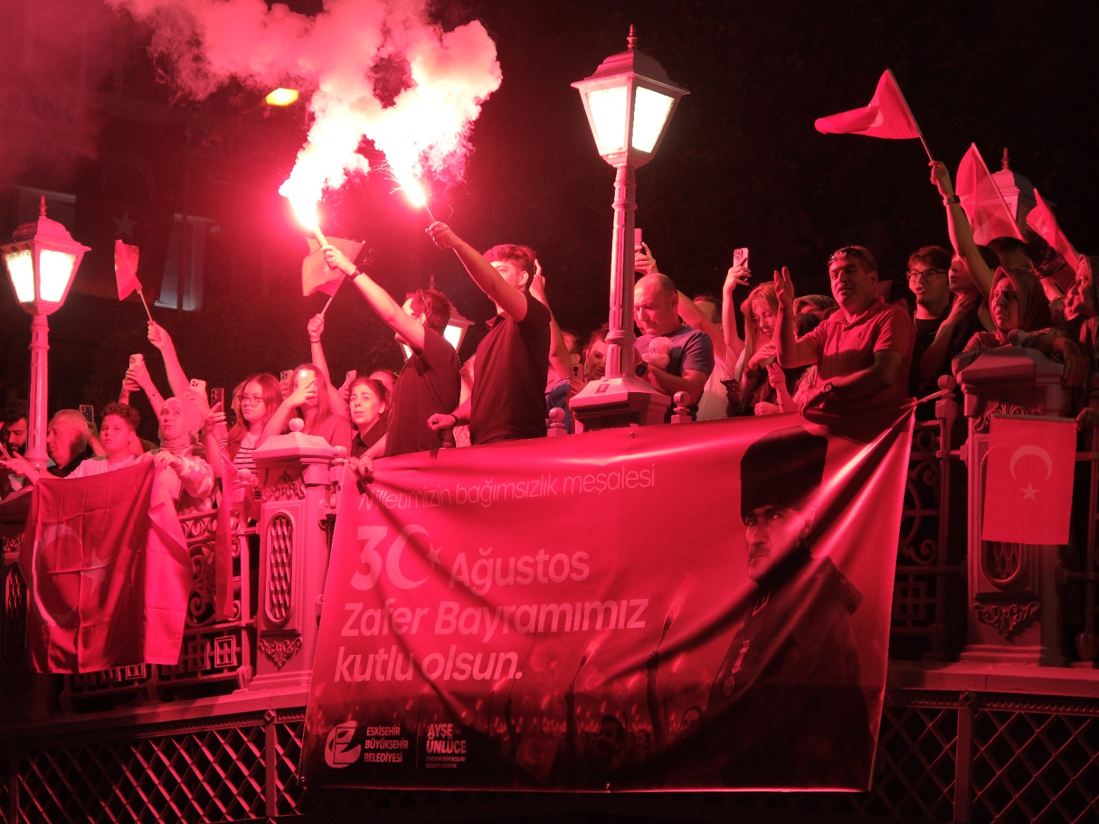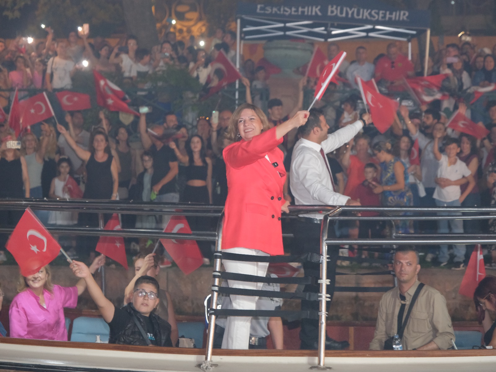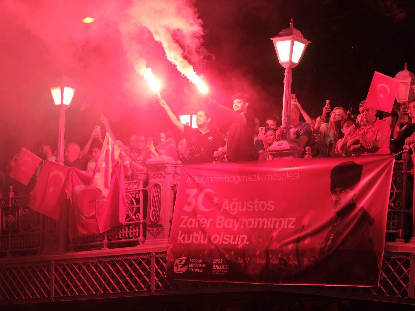 Kutlamaların ilk adresi sabah saatlerinde Atatürk Bulvarı oldu. Resmi geçit törenine katılan Eskişehir Büyükşehir Belediye Başkanı Ayşe Ünlüce, ellerinde Türk bayraklarıyla alanı dolduran vatandaşların bayram coşkusuna ortak oldu. Akşam saatlerinde ise zafer coşkusu, şehrin simgesi Porsuk Çayı’na taşındı.