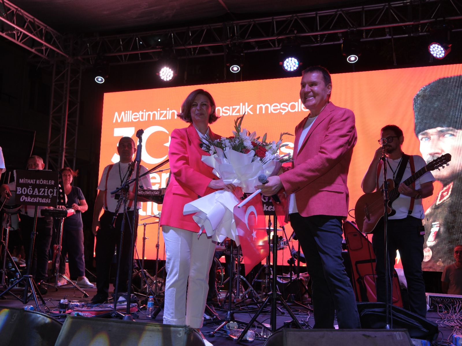 Fener Alayı'nın ardından Adalar Mevkii'nde sahne alan şehrin sevilen sesi Mithat Körler ve Boğaziçi Orkestrası, marşlar ve şarkılarla zafer coşkusunu zirveye taşıdı.