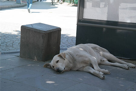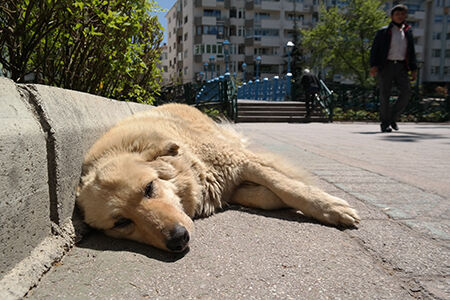 Sıcaklıkların 20-25 dereceleri gördüğü sıcak günlerde sokak hayvanları kimi zaman güneşin tadını çıkardı,
