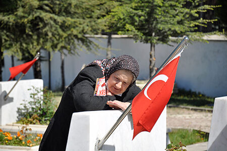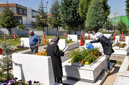 Eskişehir’de bulunan Kanlıpınar Şehitliğine sabahın erken saatlerinden itibaren gelmeye başlayan aileler, şehit mezarları başında Kur’an-ı Kerim okuyarak dua etti. Şehit yakınları, mezarlıkları sularken duygu dolu anlar yaşadı.