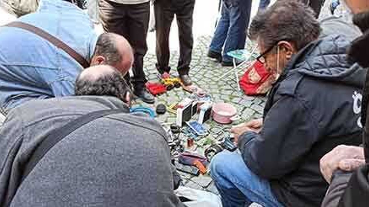 Sıcaksular sokakta birkaç vatandaş yere bez sererek ikinci el eşya tezgâhı kurdu.