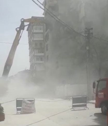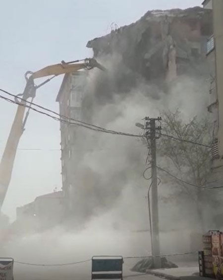 Edinilen bilgiye göre; Kurtuluş Mahallesinde bulunan binanın, yaklaşık 5 sene önce dış yalıtımı için belediyeye yapılan başvuru sonrası alınan numunelerle çürük olduğu belirlendi. Daha sonra boşaltılan 7 katlı binanın bugün yıkımına başlandı.