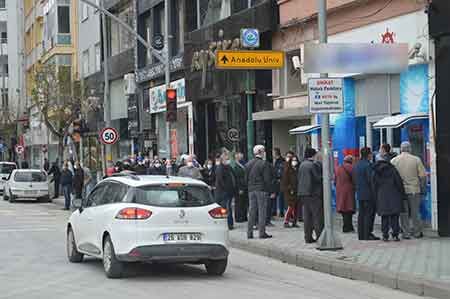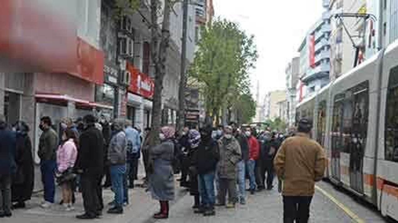 Eskişehir’de sokağa çıkma kısıtlamasının bitmesiyle birlikte vatandaşlaralar bankalar önünde uzun kuyruk oluşturdu.