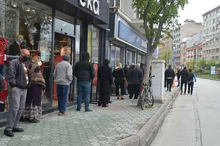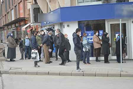 Kısıtlamanın ardından ilk pazartesi bazı vatandaşlar emekli maaşlarını almak için, bazıları ise günlük işlemlerini tamamlamak için kuyruğa girdiler.