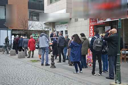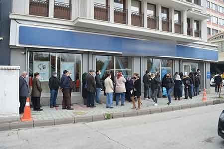 Öte yandan, maskelerini takan vatandaşlar, işlemlerini yaptırabilmek için uzun süre kapıda bekledikten sonra kontrol edilerek içeri alınırsa da dışarıdaki görüntü duyarlıları tedirgin ediyor.