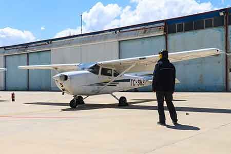 “Covid-19 günlük sorti sayımızı düşürdü” Dünya genelinde etkisini hissettiren Covid-19 küresel salgınının uçuşlarda bazı aksamalara neden olduğunu ancak eğitimlerin devam ettiğini dile getiren Pilot Uçuş Eğitmeni Ergün Altuğ, “1986 yılında kurulan okulumuz yaklaşık 34 yıldır başarıyla eğitimini sürdürüyor. Şu ana kadar 500’ün üzerinde öğrencimizi mezun ettik. Bu sayıya Türk Hava Yolları ve diğer kuruluşların kursiyerleri de dahil. Örgün öğrencilerimiz merkezi yerleştirme sistemi ile tercih edip geliyor.