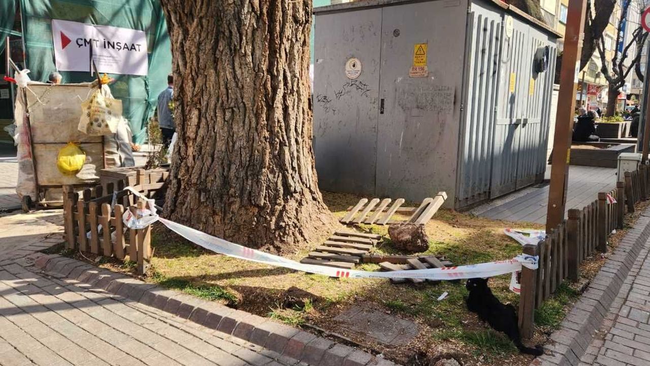Eskişehir’in yoğun kullanılan Hamamyolu Caddesi üzerinde bir ağacın etrafındaki ahşap çit kırıldı. Parçaların zemine düşmesi üzerine güvenlik amacıyla şerit çekildi.