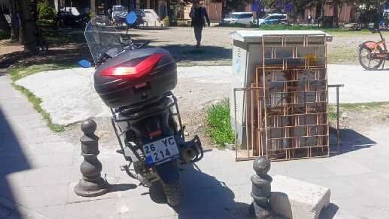 Eskişehir Hamamyolu’nda kaldırım üzerine park edilen bir motosiklet, yaya geçiş alanını daraltarak dikkat çekti. Yaya kullanımına ayrılan bölümün içine kadar giren araç, geçiş hattının bir kısmını kapattı.