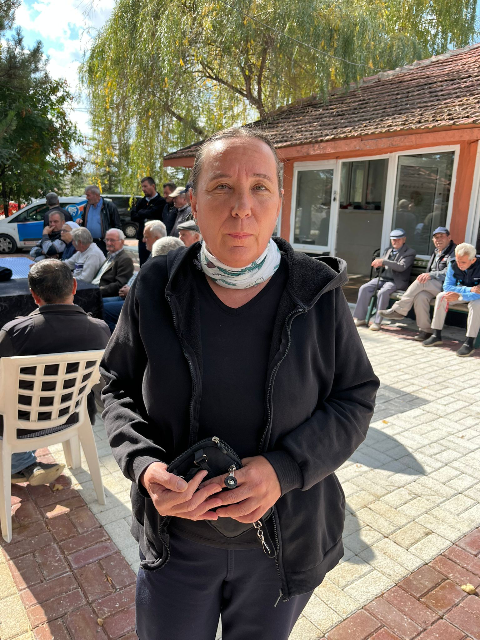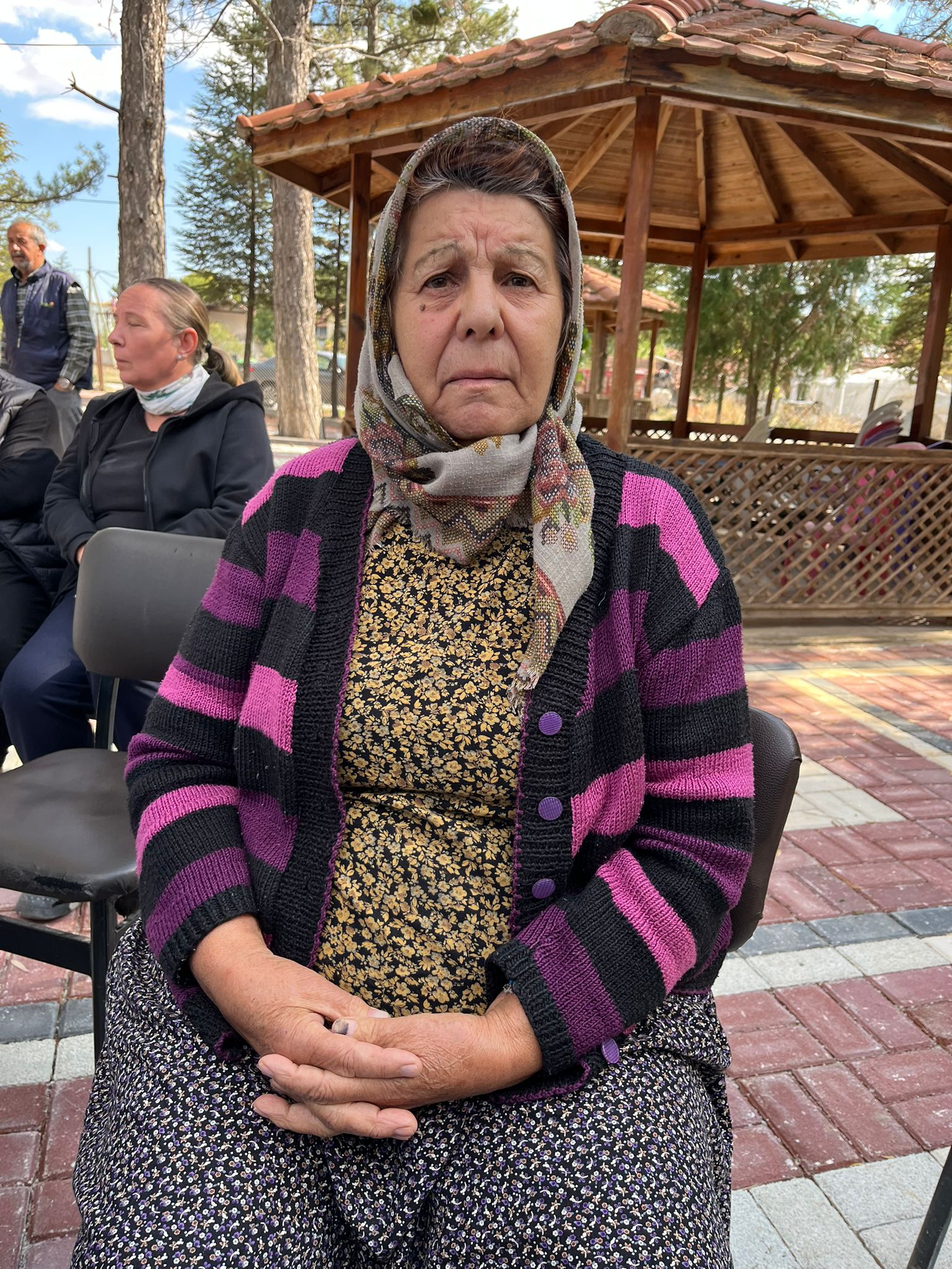 Kaymazyayla sakini 75 yaşındaki Pembe Yaşaran: “Doğdum doğalı bu köydeyim. Ölümüz dirimiz her şeyimiz burada. Ben köyümü çok seviyorum. Neden köyümüz mahvolsun bir altın yüzünden? Bu yıllarda çok etkisini gördük madenin; bahçeler meyveler kuruyor. Hiçbir şeyin tadı, tuzu kalmadı. Bu kadar da olmaz. Kimin yaptığını bilmiyoruz bu kadar yapmasın insanları ziyan etmesinler. Olur mu böyle bir şey? Zeytinliği kesiyorlar, suyunu veriyorlar… Bizim köyden su kesiyorlar. Su biterse ne yapacağız? Susuz kaldık farz et biz burada ne yapacağız? Beni öldürseler de gitmem ben buradan. Niye gideyim ben köyümü çok seviyorum. Neden bi meyvem, domatesim, biberim olmasın? Kurudu ter taraf, ürün yetişmiyor. Köy olarak dava açacağız. Biz varız, yan köyler var. Yapmasınlar, insanların canlarını, güzel aydınlık hayatlarına kıymasınlar. Bu kadar da olmaz. Türkiye’miz neden böyle oldu ben anlamıyorum. Ne güzel tertemiz doğal buğdayımız, ayçiçeğimiz oluyordu, hepsi kalktı.”
