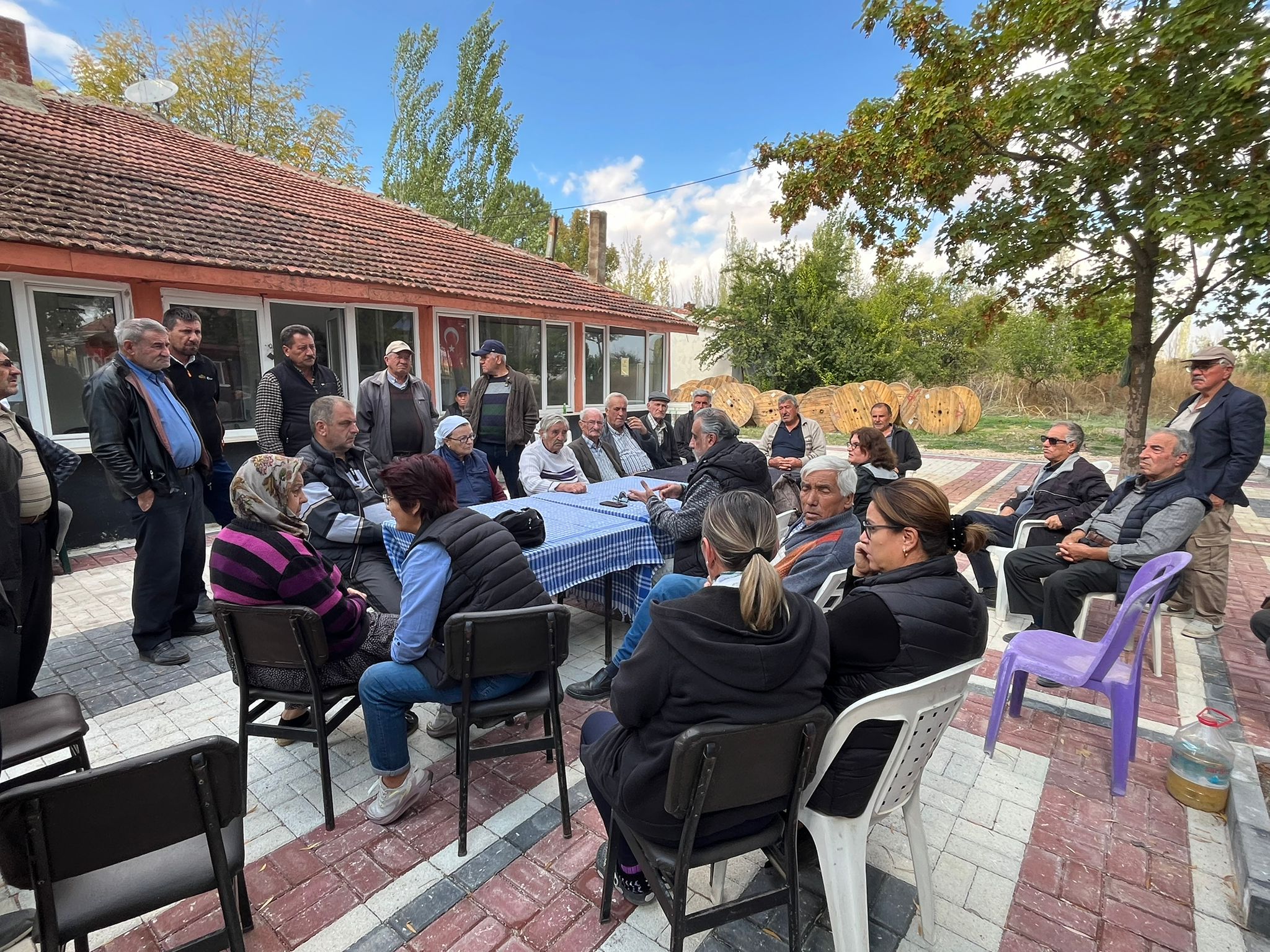 Yaklaşık bir yılı aşkın süredir kent merkezinde ve kırsalda talan madenciliğine karşı ciddi bir mücadele yürütmeye çalıştıklarını anlatan Eskişehir Ekoloji Derneği Başkanı Filiz Fatma Özkoç, “Kaymaz’da Koza’nın üçüncü atık barajı projesi hayata geçti ve Çanakkale’den gelecek olan cevher artık Kaymaz’da işlenecek, zenginleştirilecek. Kaymaz’da hukuki mücadeleyi başlatmak için buraya geldik. Hukuki mücadelede başarıya ulaşacağımıza inanıyoruz. Bugüne kadar çok kez Kaymaz’a geldik ama artık Kaymaz halkı da bu olayın tamamen bilincine varmış ve bu madeni atık barajını burada istemiyor. Çünkü yaklaşık 20 yıldır Kaymaz’da hiçbir şey eskisi gibi değil. Toprakları, suyu, havası ve özellikle de sağlık açısından çok büyük endişeler oluşmuş; kanser hastası ve ölümlerin sayısı artmış. En önemlisi de yaşam için temel olan su ihtiyacı tamamen bitmiş. Yakında Karakaya köyü var, maden şirketi oradan da su almış ama oranın suyu bitmiş; yeraltı suyunu kullanmış. Şimdi Kaymaz köyünün yeraltı suyunu kullanmaya çalışıyor. Ara ara tankerlerle köye su geliyor. İnsanların hayatta kalabilmeleri için temel ihtiyacı olan su bitmiş ama hala maden şirketleri burada kendi karlarını, kendi hırslarının mücadelesini vermeye çalışıyor. Halk istemiyor, maden şirketini burada kabul etmiyor. Bu hafta içinde hukuki sürece başlıyor. Çoğu Kaymaz halkı hukuki sürece de müdahil oluyorlar” dedi.