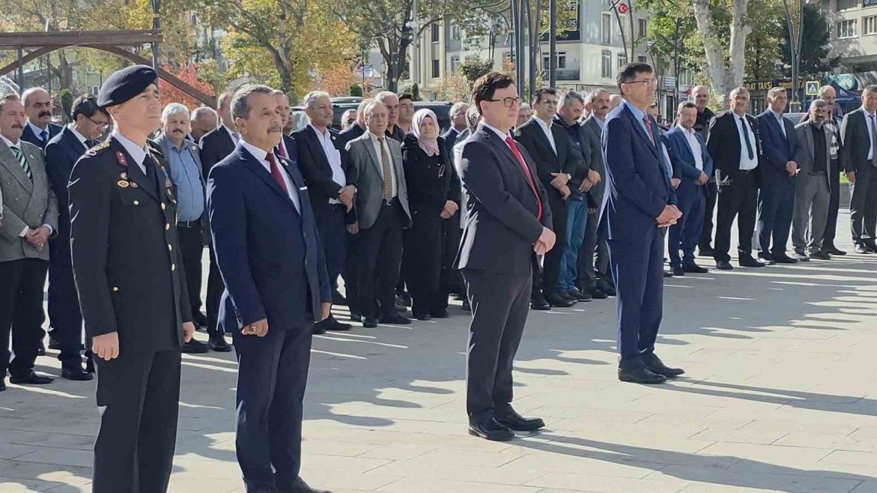 Törende saygı duruşunda bulunulmasının ve İstiklal Marşı’nın okunmasının ardından Atatürk Anıtı’na çelenk sunuldu.