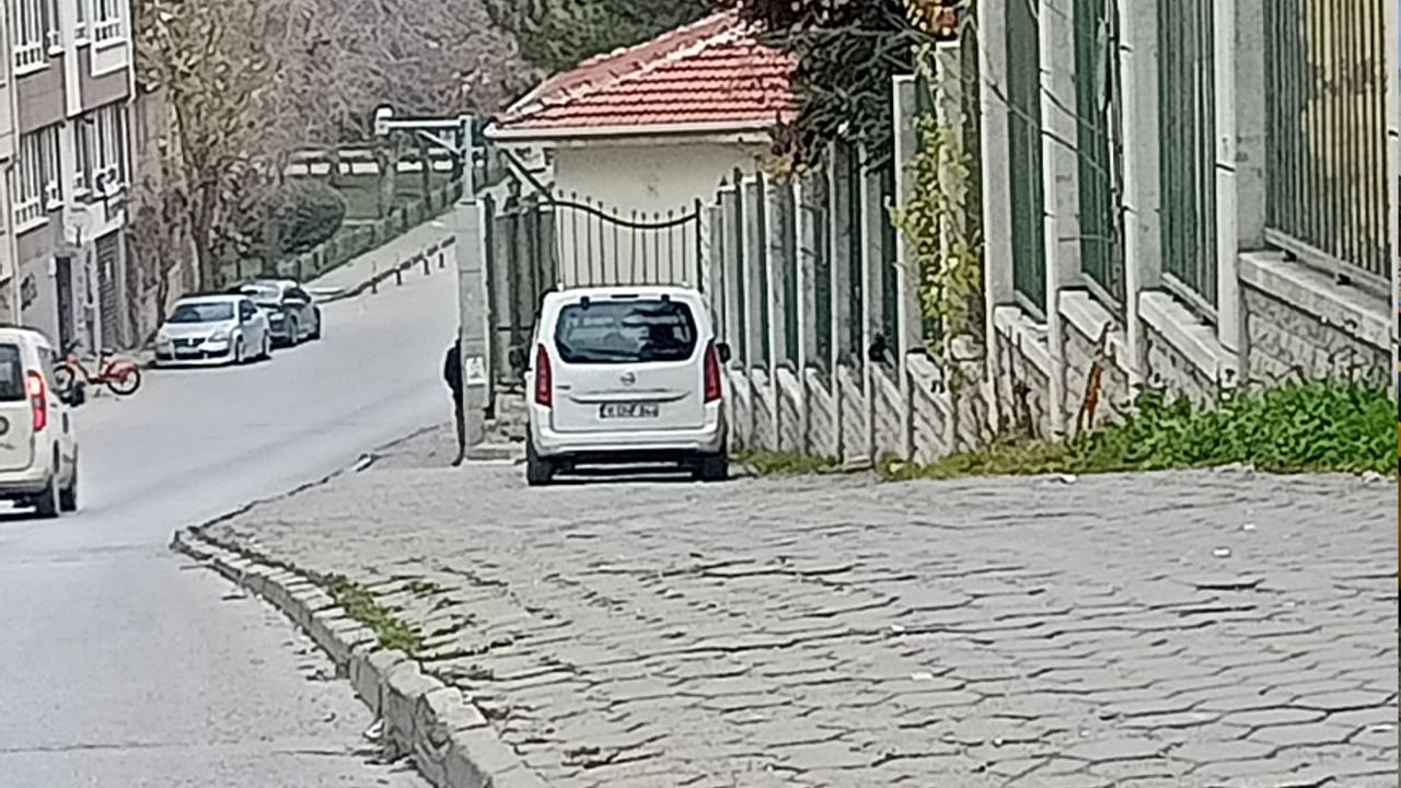 Sokak boyunca bazı noktalarda araçların kaldırım taşlarına çıkarak park ettiği görülürken, bu durum yaya geçiş alanlarını daraltıyor.